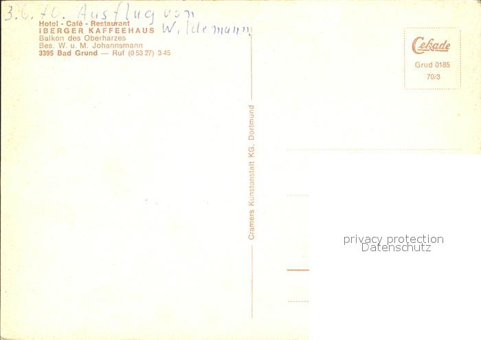 71952692 Bad Grund Hotel Cafe Restaurant Iberger Kaffeehaus postalisch nicht gelaufen Erhaltung siehe scans KatCode: 11110003156001