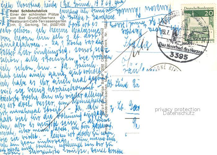 72946521 alte Postkarte Bad Grund Hotel Sch?nhofsblick Fliegeraufnahme postalisch gelaufen Erhaltung siehe scans [LiesaD40] KatCode: 11110003156001