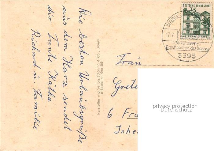 73242807 alte Postkarte Bad Grund Huebichenstein Badehaus Harz-Hochstrasse Iberger-Kaffeehaus postalisch gelaufen Erhaltung siehe scans [LiesaD40] KatCode: 11110003156001