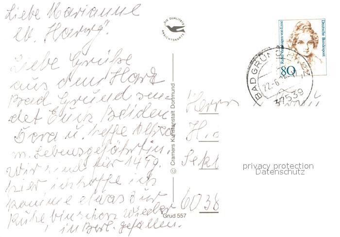 73214896 alte Postkarte Bad Grund Kirche Iberger Tropfsteinhoehle Teilansicht Kurzentrum Brunnen Rathaus Markt postalisch gelaufen Erhaltung siehe scans [FriedD77] KatCode: 11110003156001