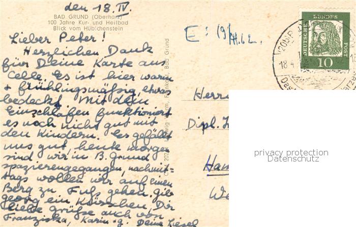 73769381 alte Postkarte Bad Grund Kur und Heilbad Blick vom Huebichenstein postalisch gelaufen Erhaltung siehe scans [WerneD78] KatCode: 11110003156001
