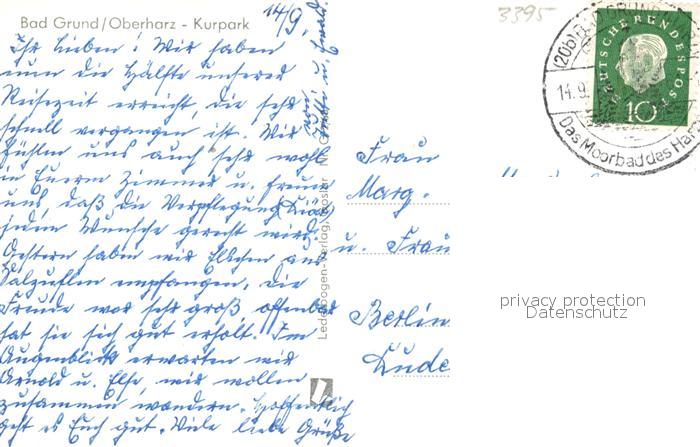 43352493 alte Postkarte Bad Grund Kurpark postalisch gelaufen Erhaltung siehe scans [WerneD78] KatCode: 11110003156001