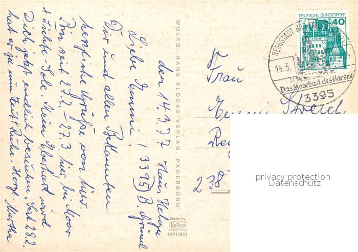 72967855 alte Postkarte Bad Grund Kurpark Huebichenstein Kurkonzert postalisch gelaufen Erhaltung siehe scans [LiesaD40] KatCode: 11110003156001