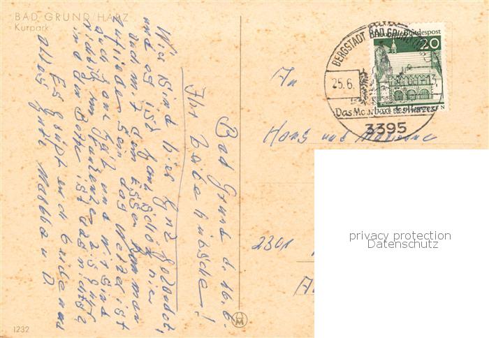 73829952 alte Postkarte Bad Grund Kurpark postalisch gelaufen Erhaltung siehe scans [WerneD78] KatCode: 11110003156001