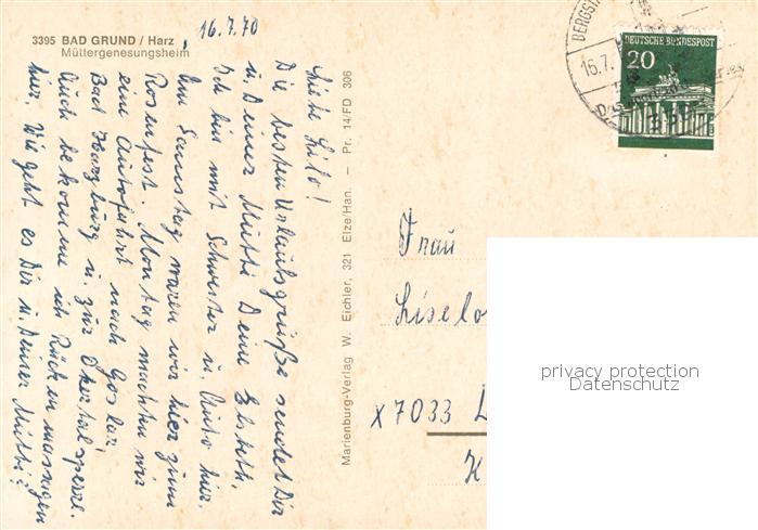 73793297 alte Postkarte Bad Grund Muettergenesungsheim postalisch gelaufen Erhaltung siehe scans [LiesaD40] KatCode: 11110003156001
