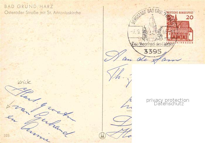 72743279 alte Postkarte Bad Grund Osteroder Strasse mit St Antoniuskirche postalisch gelaufen Erhaltung siehe scans [FriedD77] KatCode: 11110003156001