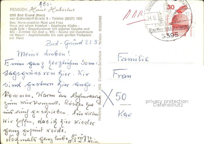 72557308 alte Postkarte Bad Grund Pension Haus Hubertus postalisch gelaufen Erhaltung siehe scans [KathaD79] KatCode: 11110003156001