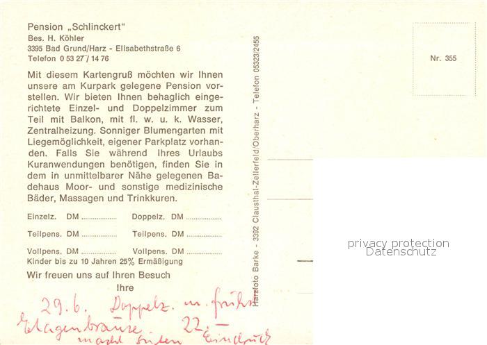 73171379 Bad Grund Pension Schlinckert Stadtpanorama postalisch nicht gelaufen Erhaltung siehe scans [FriedD77] KatCode: 11110003156001