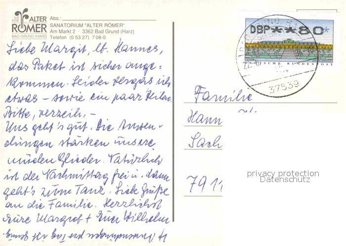 72845976 alte Postkarte Bad Grund Sanatorium Alter Roemer postalisch gelaufen Erhaltung siehe scans [LiesaD40] KatCode: 11110003156001