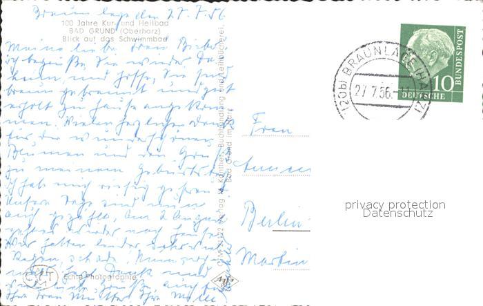 72332871 alte Postkarte Bad Grund Schwimmbad postalisch gelaufen Erhaltung siehe scans KatCode: 11110003156001