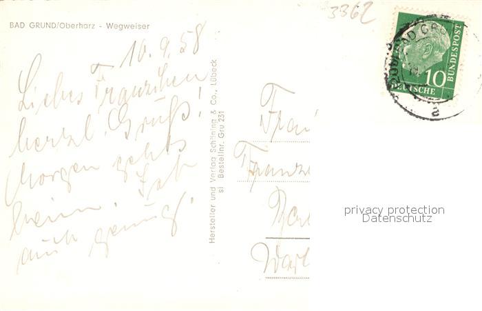 43352507 alte Postkarte Bad Grund Wegweiser postalisch gelaufen Erhaltung siehe scans [WerneD78] KatCode: 11110003156001