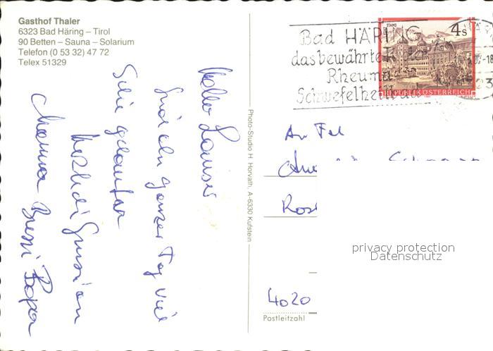 72465640 alte Postkarte Bad Haering Tirol Gasthof Thaler postalisch gelaufen Erhaltung siehe scans KatCode: 11390335070503