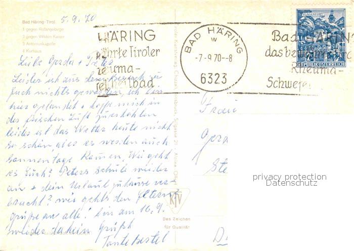 72859055 alte Postkarte Bad Haering Tirol Panorama Kirche Brunnen postalisch gelaufen Erhaltung siehe scans [AndreD76] KatCode: 11390335070503