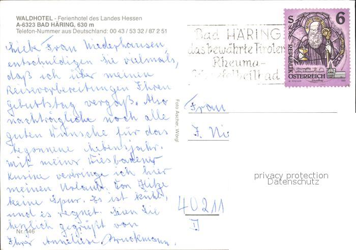 72013124 alte Postkarte Bad Haering Tirol Waldhotel postalisch gelaufen Erhaltung siehe scans KatCode: 11390335070503