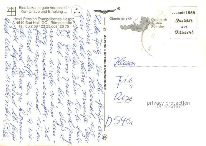 73230551 alte Postkarte Bad Hall Oberoesterreich Hotel Pension Evangelisches Hospiz postalisch gelaufen Erhaltung siehe scans [FriedD77] KatCode: 11390314041503