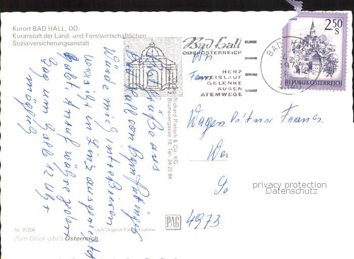 72285924 alte Postkarte Bad Hall Oberoesterreich Kuranstalt der Land und Forstwirtschaftlichen Sozialversicherungsanstalt postalisch gelaufen Erhaltung siehe scans KatCode: 11390314041503