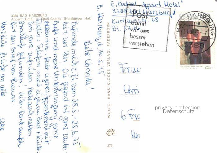 72850922 alte Postkarte Bad Harzburg Appart Hotel Spiel Casino postalisch gelaufen Erhaltung siehe scans [NatalD47] KatCode: 11110003153002