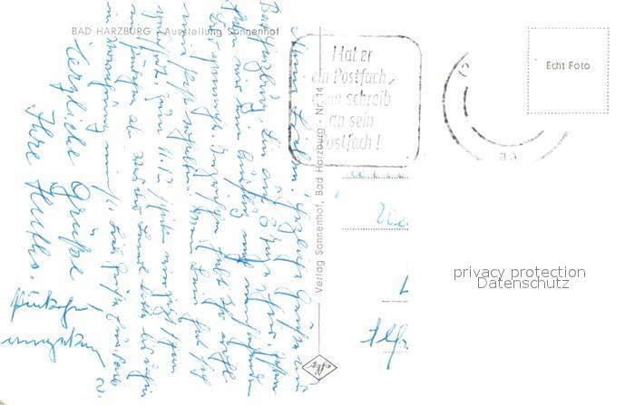 72642678 alte Postkarte Bad Harzburg Ausstellung Sonnenhof postalisch gelaufen Erhaltung siehe scans [NatalD47] KatCode: 11110003153002