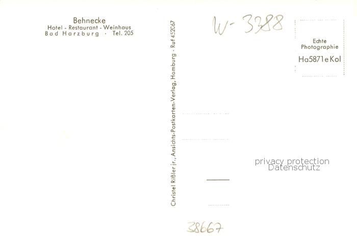 73784768 Bad Harzburg Behnecke Hotel Restaurant Weinhaus postalisch nicht gelaufen Erhaltung siehe scans [WerneD78] KatCode: 11110003153002