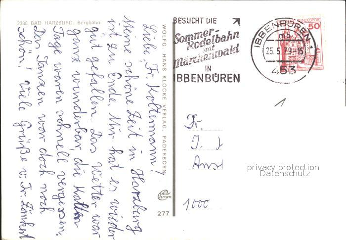 72255500 alte Postkarte Bad Harzburg Bergbahn postalisch gelaufen Erhaltung siehe scans KatCode: 11110003153002