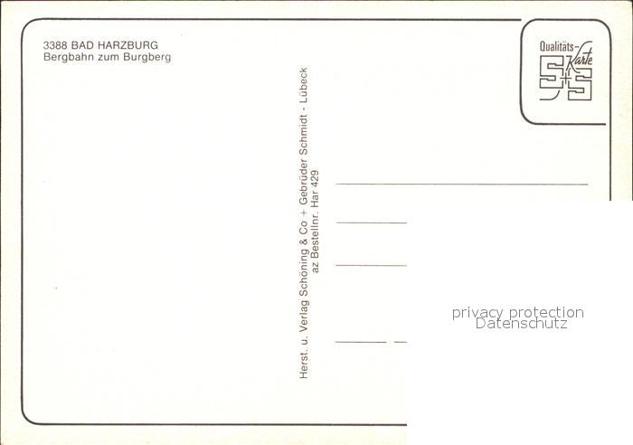 71908685 Bad Harzburg Bergbahn Burgberg postalisch nicht gelaufen Erhaltung siehe scans KatCode: 11110003153002