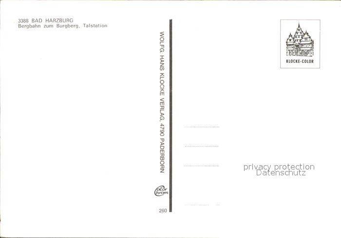 71929278 Bad Harzburg Bergbahn zum Burgberg Talstation postalisch nicht gelaufen Erhaltung siehe scans KatCode: 11110003153002