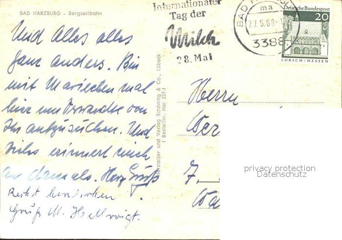 71947740 alte Postkarte Bad Harzburg Bergseilbahn postalisch gelaufen KatCode: 11110003153002
