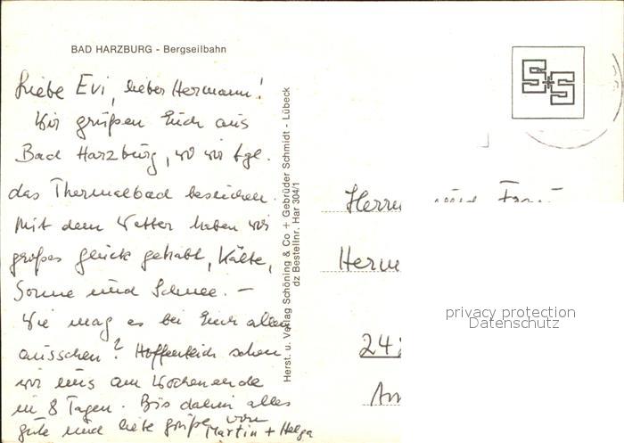 71899826 alte Postkarte Bad Harzburg Bergseilbahn postalisch gelaufen Erhaltung siehe scans KatCode: 11110003153002