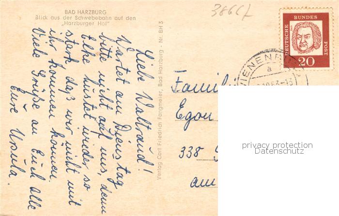 73763457 alte Postkarte Bad Harzburg Blick aus der Schwebebahn Hotel Harzburger Hof postalisch gelaufen Erhaltung siehe scans [FriedD77] KatCode: 11110003153002