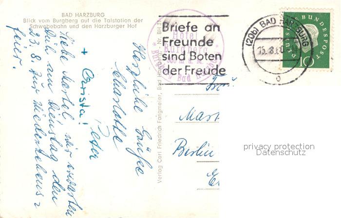73292460 alte Postkarte Bad Harzburg Blick vom Burgberg Talstation Schwebebahn Harzburger Hof postalisch gelaufen Erhaltung siehe scans [WerneD78] KatCode: 11110003153002