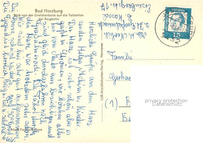 73656366 alte Postkarte Bad Harzburg Blick von der Gretchenbank auf die Talstation der Bergbahn postalisch gelaufen Erhaltung siehe scans [WerneD78] KatCode: 11110003153002