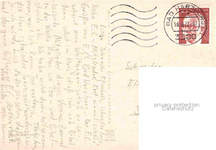72843611 alte Postkarte Bad Harzburg Braunlage Kurpark postalisch gelaufen Erhaltung siehe scans [LiesaD40] KatCode: 11110003153002