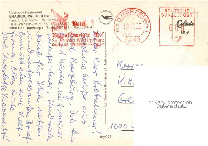 72714662 alte Postkarte Bad Harzburg Braunschweiger Hof Terrasse Hallenbad Gastraum postalisch gelaufen Erhaltung siehe scans [FriedD77] KatCode: 11110003153002