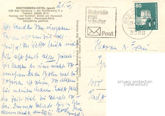 73735476 alte Postkarte Bad Harzburg Breitenberg Hotel postalisch gelaufen Erhaltung siehe scans [WerneD78] KatCode: 11110003153002