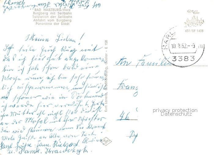 72952648 alte Postkarte Bad Harzburg Burgberg mit Seilbahn Talstation Stadtpanorama postalisch gelaufen Erhaltung siehe scans [FriedD77] KatCode: 11110003153002