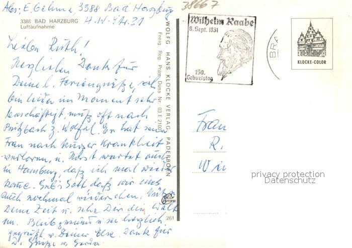73668428 alte Postkarte Bad Harzburg Fliegeraufnahme postalisch gelaufen Erhaltung siehe scans [WerneD78] KatCode: 11110003153002
