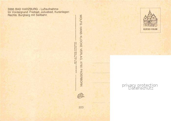 72839528 Bad Harzburg Fliegeraufnahme Freibad Juliusbad Kuranlagen Burgberg Seilbahn postalisch nicht gelaufen Erhaltung siehe scans [AndreD76] KatCode: 11110003153002