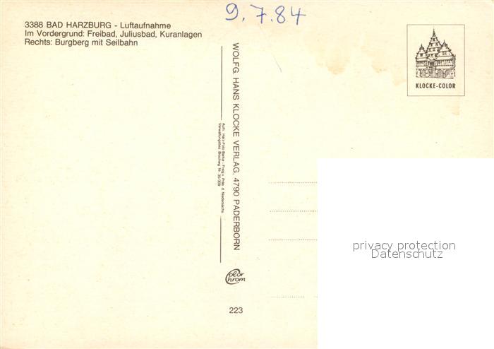 73121968 Bad Harzburg Fliegeraufnahme Freibad Juliusbad Kuranlagen Burgberg Seilbahn postalisch nicht gelaufen Erhaltung siehe scans [LiesaD40] KatCode: 11110003153002