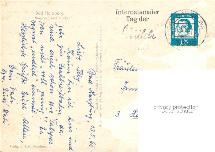 72792307 alte Postkarte Bad Harzburg Fliegeraufnahme mit Burgberg und Brocken postalisch gelaufen Erhaltung siehe scans [LiesaD40] KatCode: 11110003153002