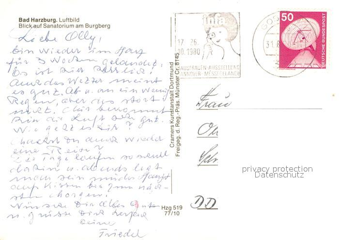 72987687 alte Postkarte Bad Harzburg Fliegeraufnahme mit Sanatorium am Burgberg postalisch gelaufen Erhaltung siehe scans [LiesaD40] KatCode: 11110003153002