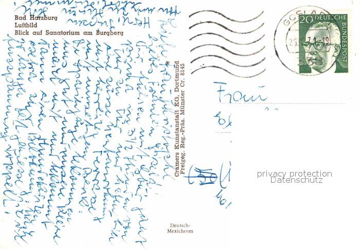 72793128 alte Postkarte Bad Harzburg Fliegeraufnahme mit Sanatorium am Burgberg postalisch gelaufen Erhaltung siehe scans [LiesaD40] KatCode: 11110003153002