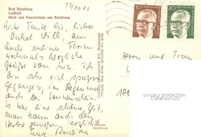 73088518 alte Postkarte Bad Harzburg Fliegeraufnahme Sanatorium am Burgberg postalisch gelaufen Erhaltung siehe scans [NatalD47] KatCode: 11110003153002