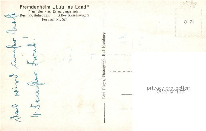 43353106 Bad Harzburg Fremdenheim Lug ins Land postalisch nicht gelaufen Erhaltung siehe scans [KathaD81] KatCode: 11110003153002