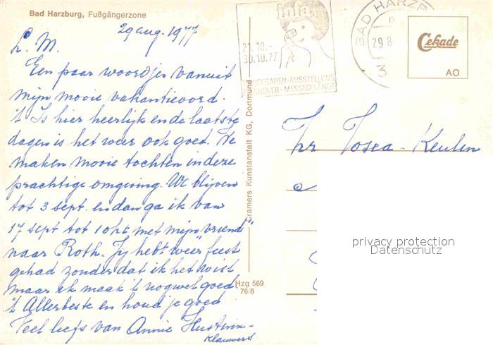 72845233 alte Postkarte Bad Harzburg Fussgaengerzone Harzburger Volksbank postalisch gelaufen Erhaltung siehe scans [NatalD47] KatCode: 11110003153002