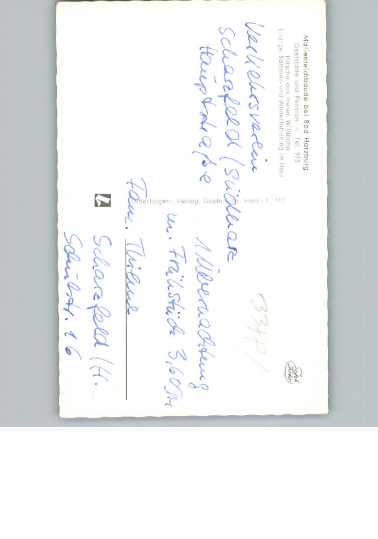 31126210 Bad Harzburg Gaststaette und Pension Marienteichbaude postalisch nicht gelaufen KatCode: 11110003153002