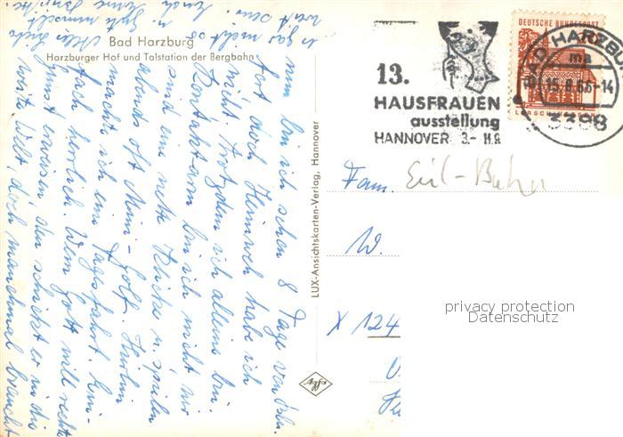 73775802 alte Postkarte Bad Harzburg Harzburger Hof und Talstation der Bergbahn postalisch gelaufen Fliegeraufnahme Erhaltung siehe scans [WerneD78] KatCode: 11110003153002