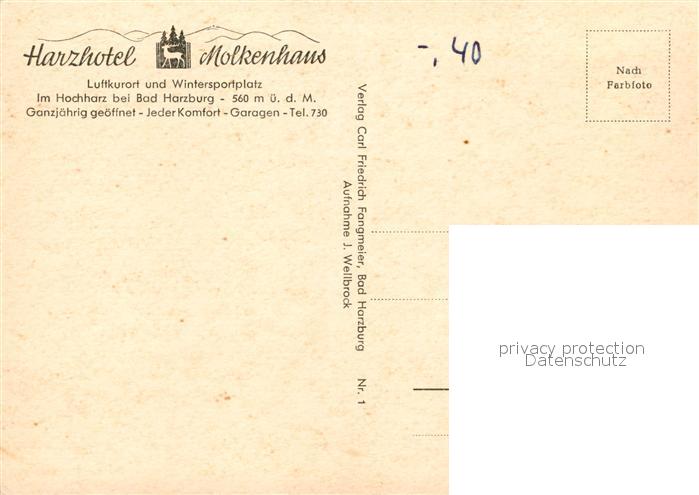 73126927 Bad Harzburg Harzhotel Molkenhaus postalisch nicht gelaufen Erhaltung siehe scans [KathaD81] KatCode: 11110003153002