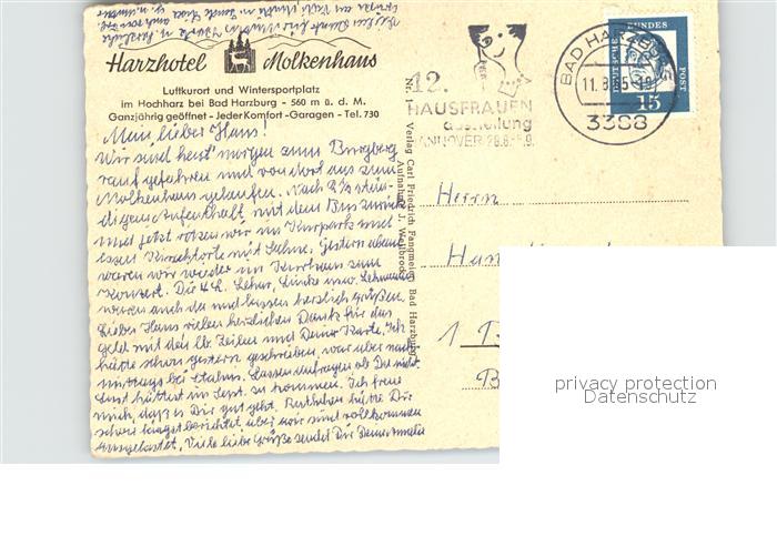 72527618 alte Postkarte Bad Harzburg Harzhotel Molkenhaus Luftkurort postalisch gelaufen Erhaltung siehe scans KatCode: 11110003153002
