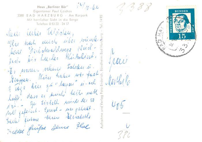 73870661 alte Postkarte Bad Harzburg Haus Berliner Baer Kurhotel postalisch gelaufen Erhaltung siehe scans [FriedD77] KatCode: 11110003153002