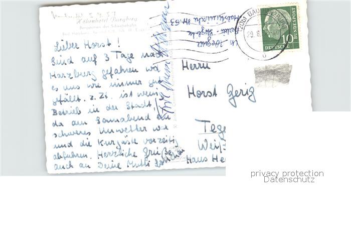 72612435 alte Postkarte Bad Harzburg Hotel Burgberg mit Schwebebahn postalisch gelaufen Erhaltung siehe scans [AndreD76] KatCode: 11110003153002